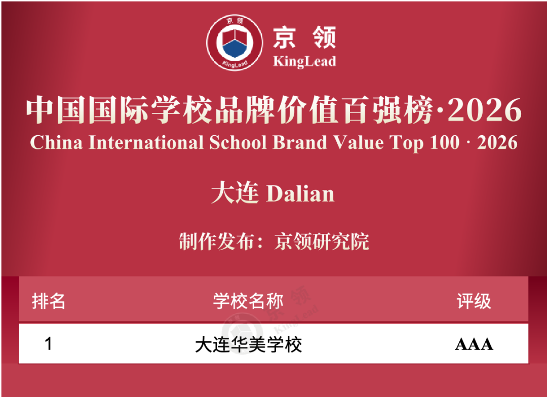大连市共有1所国际学校上榜,荣获3A评级,为大连华美学校。