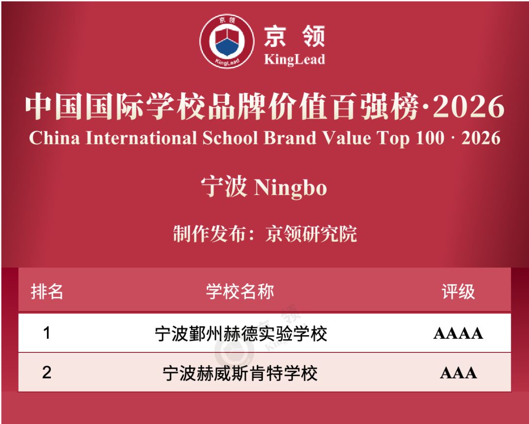 宁波市共有2所国际学校上榜。其中1所学校荣获4A评级,为宁波鄞州赫德实验学校。1所学校荣获3A评级,为宁波赫威斯肯特学校。