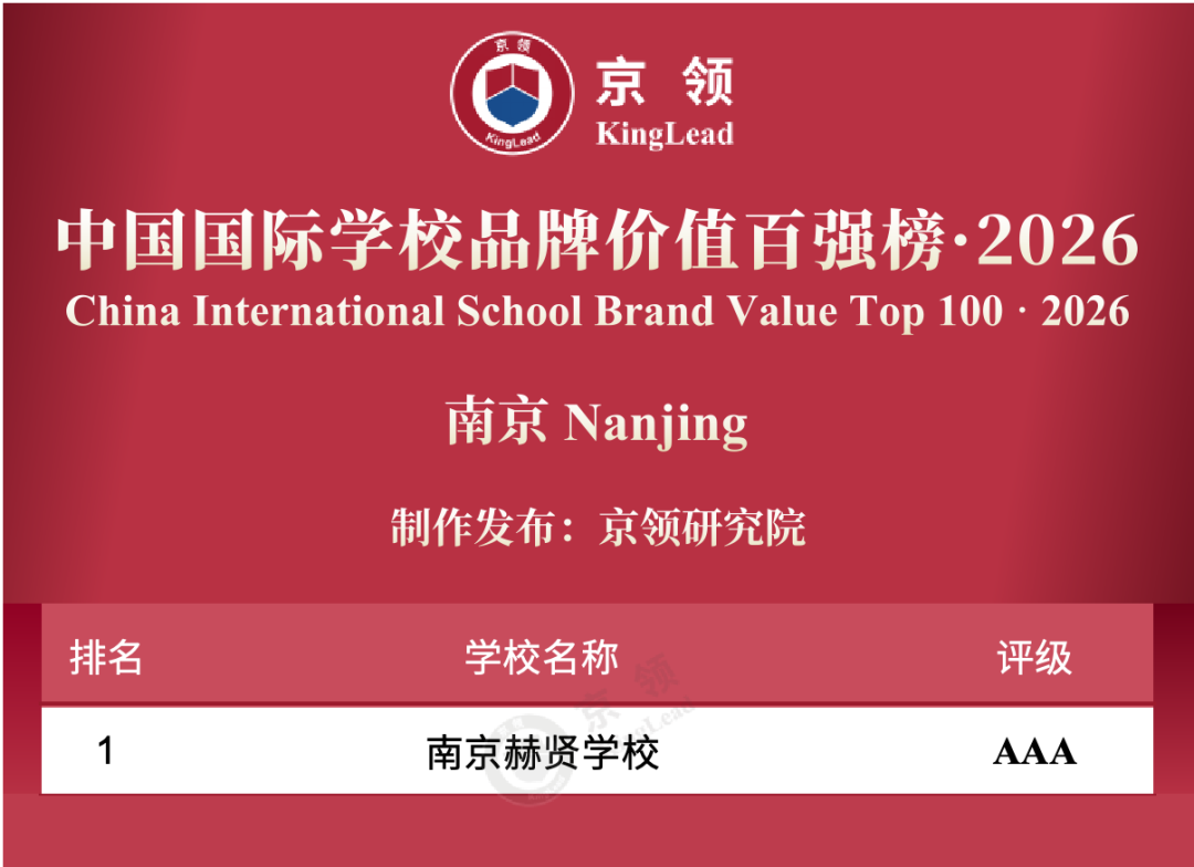 南京市共有1所国际学校上榜,荣获3A评级,为南京赫贤学校。