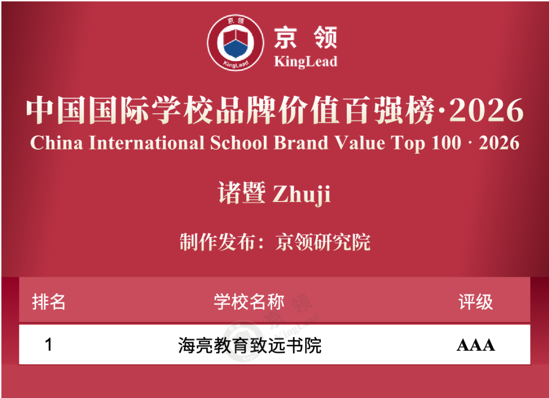 诸暨市共有1所国际学校上榜,荣获3A评级,为海亮教育致远书院。