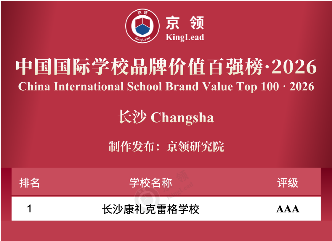 长沙市共有1所国际学校上榜,荣获3A评级,为长沙康礼克雷格学校。