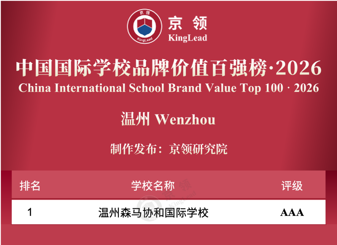 温州市共有1所国际学校上榜,荣获3A评级,为温州森马协和国际学校。