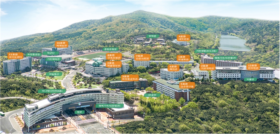 大学拥有时尚先进的教学大楼,尖端的教学设备,宁静优美的校园环境,雄厚的师资力量,还建有韩学村、博物馆大学就业中心、前途开发中心、创业培训中心、健康塔进中心、留学生支援中心等附属设施。