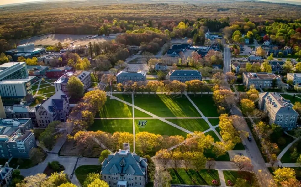 主校区地理位置优越,紧邻金斯顿市区,离纽约和波士顿的距离都在3小时车程以内。由于学校位于美国东北部的新英格兰地区,冬天温度可达-10摄氏度左右,夏天温度高的时候大概在30摄氏度左右。