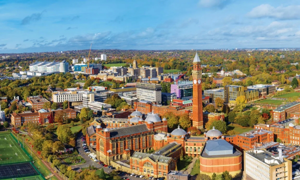 伯明翰大学(University of Birmingham),简称“伯大”,始建于1825年,位于英国第二大城市伯明翰的世界一流研究型名校,英国顶尖学府,世界百强大学,著名的六所红砖大学之一,曾于1900年获英国维多利亚女王授予的皇家特许状。学校同时也是罗素大学集团、M5大学联盟、全球大学高研院联盟成员,Universitas 21创始成员,中英大学工程教育与研究联盟成员。