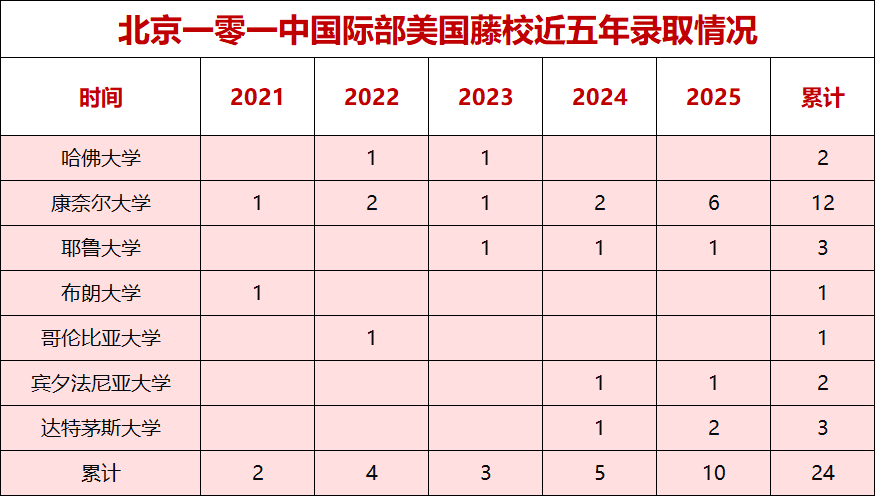 一零一国际部办学至今已有13载,获得家长与社会一致好评。22、23届连续斩获哈佛录取,23、24、25届连续耶鲁录取,并且还有多名斯坦福以及其它藤校录取,实现了“藤校大满贯”。