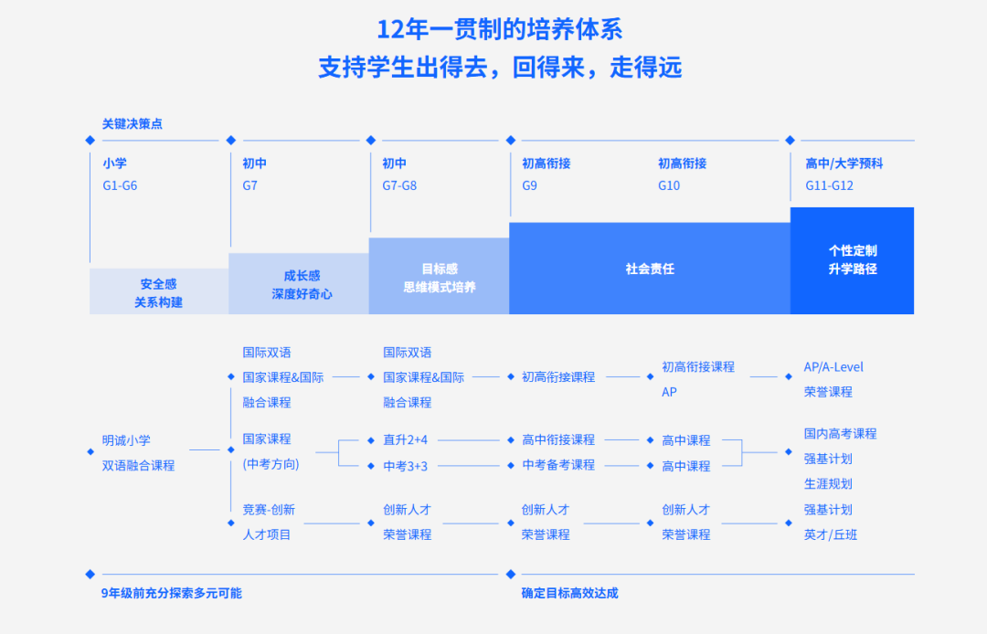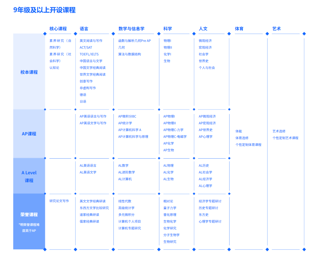 从9年级开始系统安排升学规划,为牛剑、藤校目标学生配置专业化升学团队,提供个性化申请指导,升学规划体系清晰,目标明确。