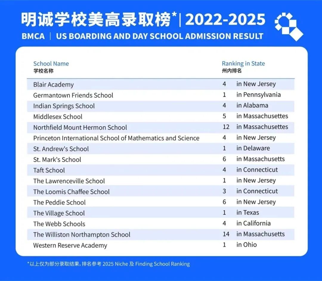 在过去连续四年中,明诚国际部每年均有初中学生斩获全美排名前十的顶尖美高录取,包括普林斯顿数理学校、Lawrenceville、Middlesex、Webb 等知名学府,稳居北京地区美高录取榜首。