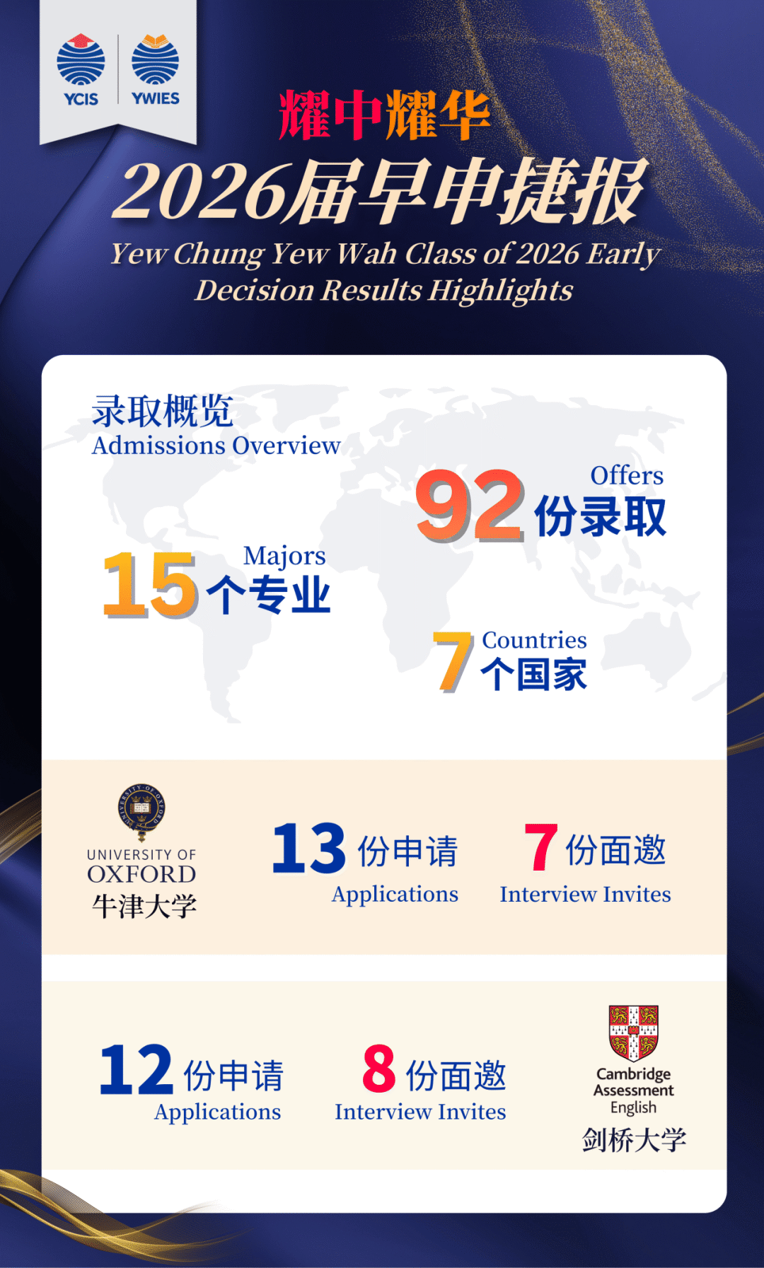 2026 届早申季——牛津7 份面邀、剑桥8 份面邀,92 份海外名校录取覆盖 7 国 15 专业。