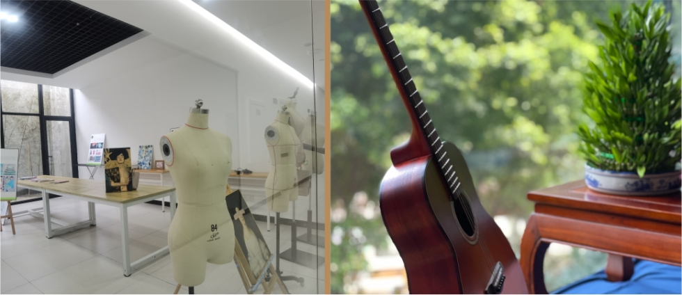 在来⾃帕森斯设计学院、纽约时装学院、中央圣⻢丁艺术与设计学院、纽约视觉艺术学院等名师教授的指导下,将艺术与产业深度结合,让每个国⾼学⽣成为具有产业思维、兼具理论和实践、具备创新竞争⼒的国际艺术设计⼈才。