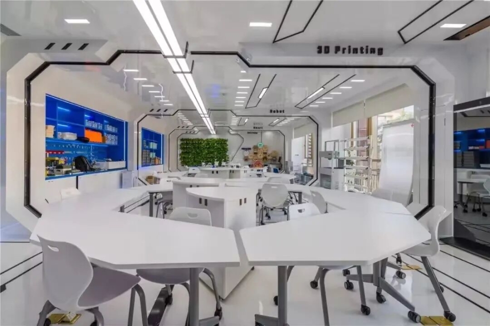 温江二十一世纪学校占地面积约173亩、总建筑面积约19万㎡,每间教室面积多达80至100平方米。学校所有的功能室、场馆设计规格都很高,是奔着专业赛事级别去打造的。