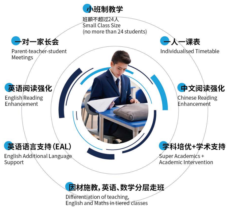 师生比为1:6,确保每位学生都可以得到个性化培养和关注。其中外籍教师占比70%,持有PGCE及QTS等教学资格证,持证上岗。超过50%以上为硕士学历。双语教师占比30%,100%纯英语授课。外籍教师中有英国籍教师占比85%,其它老师也都是接受的英式教育,且都具备合格的教师资质。升学成果