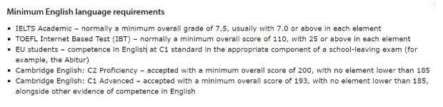 剑桥大学语言要求和去年没有变化,仍然是全专业雅思7.5,单项7.0。虽然分数要求很高,但剑桥是G5大学里唯一接受雅思单科重考的,给了同学们更灵活的准备空间。