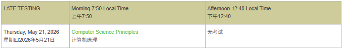 6、考试时间冲突科目安排:AP计算机原理和AP物理C:电磁学:学生只能报考5月14日的AP物理C:电磁学考试和5月21日的AP计算机原理考试。