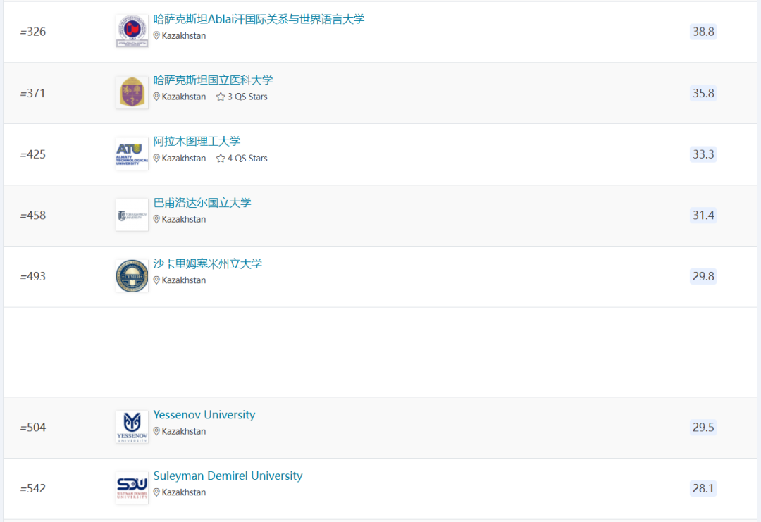 2026QS亚洲大学排名:哈萨克三所上榜,国立大学第38名