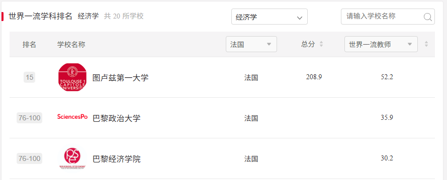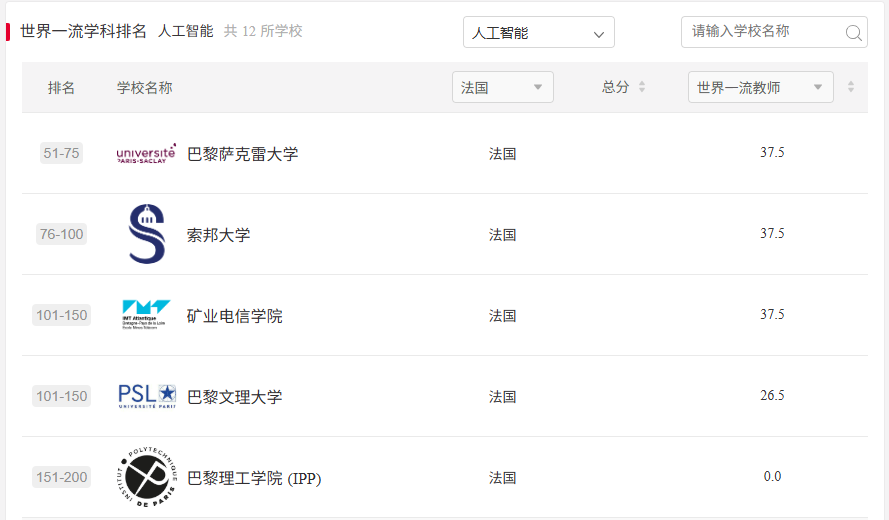 高等教育评价专业机构软科于11月18日正式揭晓 2025 “软科世界一流学科排名”(ShanghaiRanking's Global Ranking of Academic Subjects,简称 GRAS)。 法国高校在本次排名中表现惊艳,以 80 所上榜院校的亮眼成绩稳居欧陆第一,全球排名第四,588 个上榜学科中125 个跻身世界前100,彰显了其强劲的学术竞争力。 今年法国院校的表现优异:80所法国院校上榜,排名世界第四。法国共有588个学科上榜,前100名学科数达到125个。 34所法国高校出现在至少一个学科的百强榜单中,最具代表性的院校为: 巴黎-萨克雷大学,22个学科领域跻身世界百强 索邦大学,14个学科上榜百强 巴黎西岱大学,11个学科上榜百强 格勒诺布尔-阿尔卑斯大学,9个学科上榜百强 巴黎文理研究大学,7个学科上榜百强 不同领域法国院校领跑世界排名榜单: 巴黎-萨克雷大学:数学排名全球第二,物理学排名全球第六 索邦大学:海洋科学排名全球第八,地球科学排名全球第十三 南特高等商学院:工商管理全球第十 INSEAD欧洲工商管理学院:管理学全球第十三 蒙彼利埃大学:生态学排名全球第十四 格勒诺布尔大学:遥感技术专业排名全球第十四 图卢兹第一大学:经济学全球第十五名 2025年,排名新增“人工智能”与“机器人科学与工程”两大热门学科,涵盖学科总数增至57个,覆盖理学、工学、生命科学、医学和社会科学五大领域。法国在这两个新兴赛道中同样表现强劲。 整体上,法国有5个学科进入前10名,49个学科进入前50名,125个学科进入前100名,上榜学科总数达到588个。 数学仍是法国表现最突出的学科:26所法国高校榜上有名,8所进入排名榜单前百。 巴黎-萨克雷大学物理学排名全球第六,7所法国高校进入前100名。 在今年新增的工学人工智能领域,有12所法国院校上榜,其中2所院校进入前100名。 在今年新增的工学机器人科学与工程领域,有3所法国院校进入前100名。