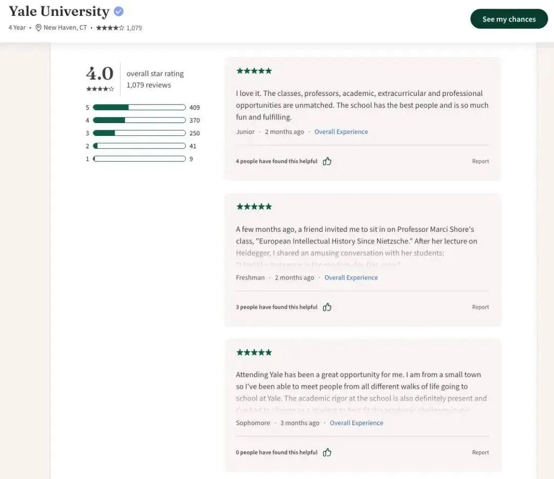 Niche采集了超1亿条评价,通过他们的真实体验为其他申请人提供参考。