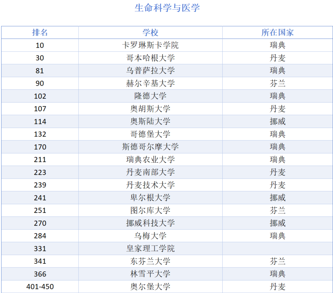 明星院校:哥本哈根大学和卡罗林斯卡医学院(瑞典)是该领域的双子星。卡罗林斯卡医学院更是负责颁发诺贝尔生理学或医学奖,其实力可见一斑。乌普萨拉大学(瑞典)在药学和研究方面也历史悠久。