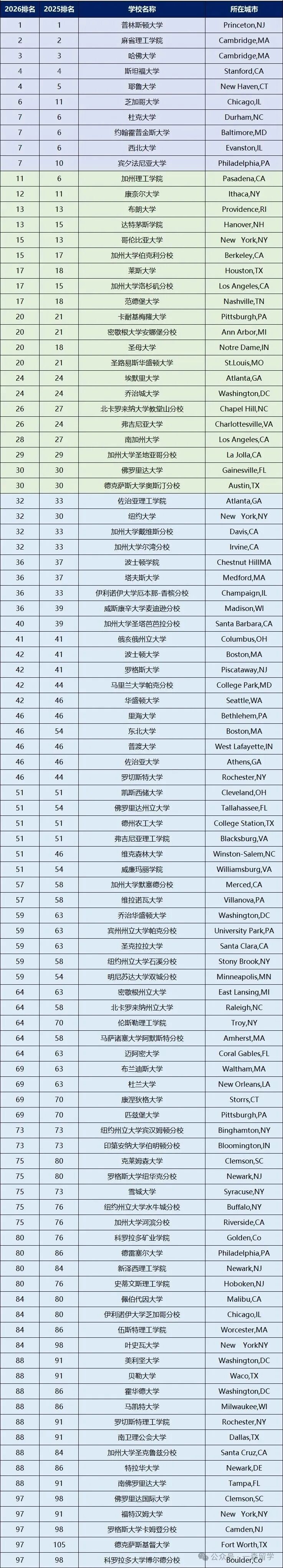 顶尖院校:“哈耶普斯麻”锁前五,芝大跃升、加州理工跌出TOP10!