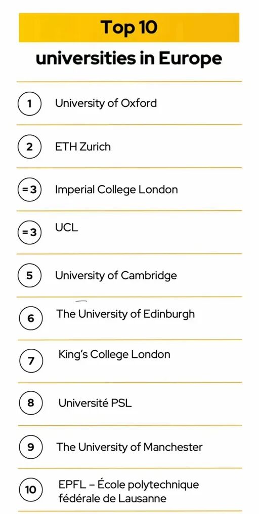 本次榜单中,英国高校大获全胜,不仅上榜数量最多,而且整体排名也很靠前,共有7所大学进入欧洲TOP10。
