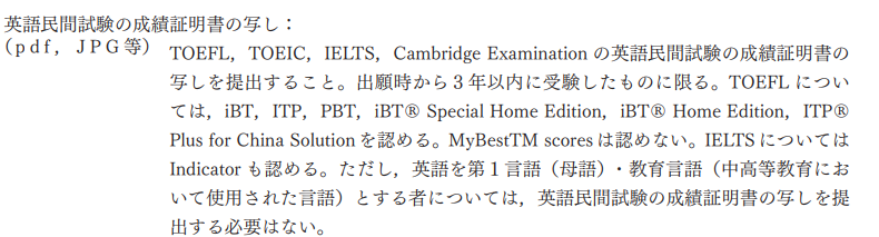 在考试报名阶段还需要提交日语能力证明(如JLPT考试)和英语能力证明(如托福/雅思/托业)。