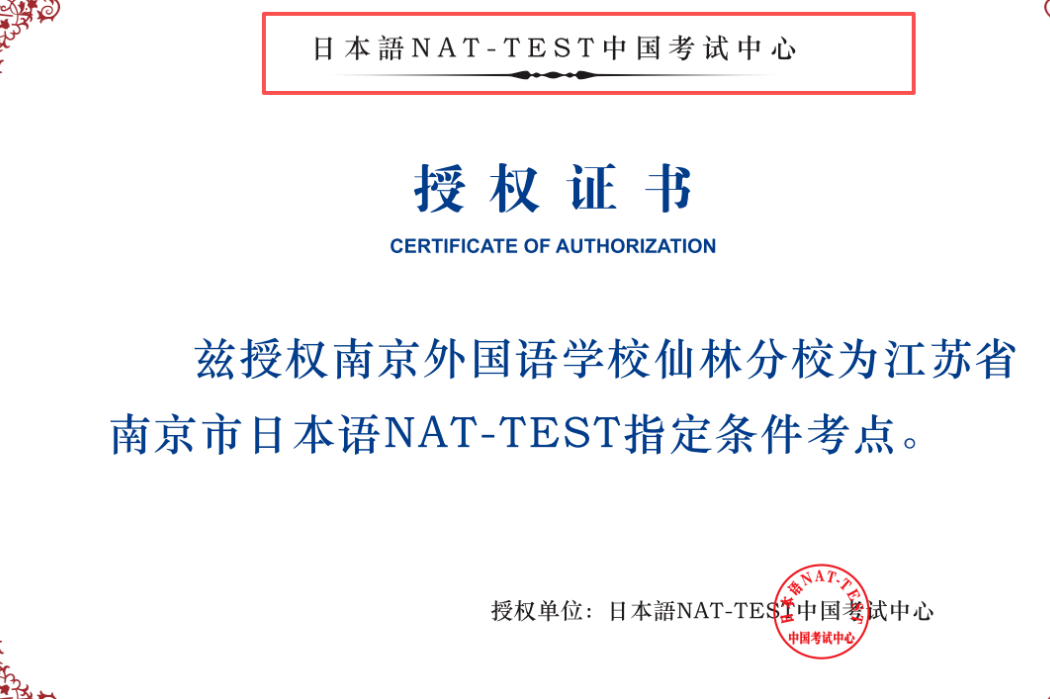 南京外国语学校仙林分校国际高中在日语教育领域取得三项国际认证与官方授权。 学校通过国际教育质量认证机构Cognia的官方认证,在教学理念、课程体系、师资建设、运营管理等方面达到国际标准。 通过认证后,学生成绩单和毕业文凭将获得日本、美国、英国、加拿大、澳大利亚等国家高校的广泛认可。 此外,实用日本语鉴定(J.TEST)和日语NAT-TEST两项权威考试先后在校内设立官方考点。 其中J.TEST为广受日本高校认可的语言能力证明,NAT-TEST则为日本入管局认可的入学资格语言考试之一。 (来源:南京外国语学校仙林分校国际高中)