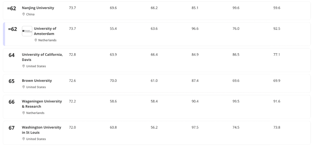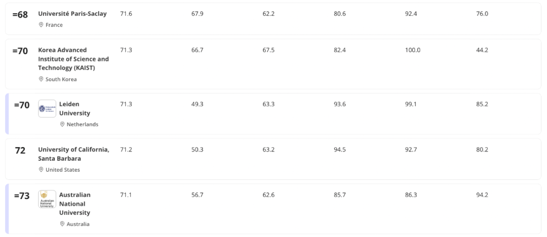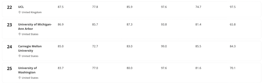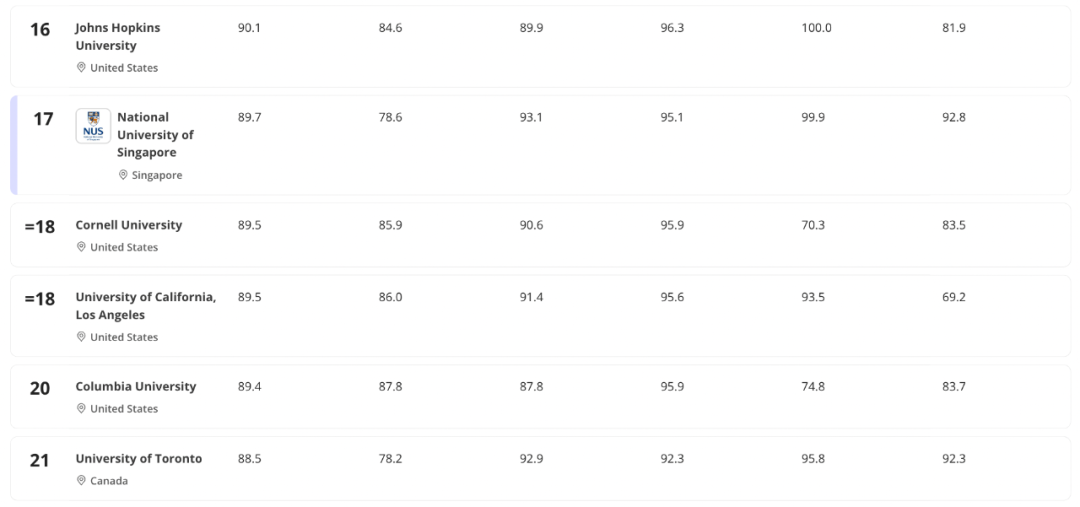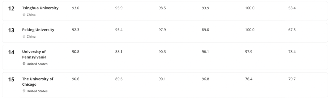 - 普林斯顿大学升至并列第三,成为今年唯一一所取得历史最好成绩的美国大学
