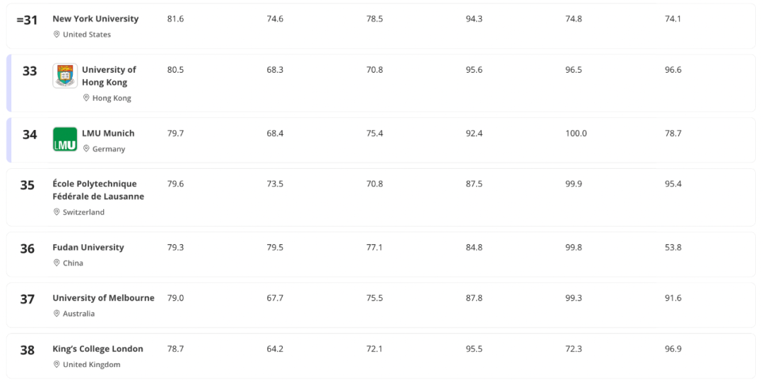 - 中国有五所大学进入前 40 名,比去年的三所有所增加,但顶尖大学保持稳定
