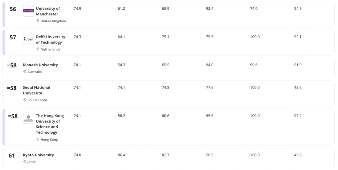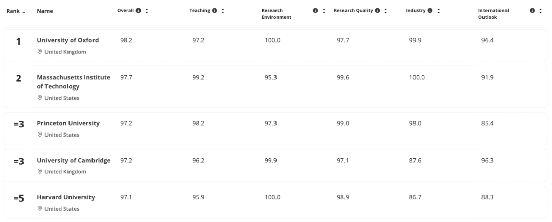 英国牛津大学再度荣登榜首,且已连续十年保持这一佳绩,刷新了历史纪录。然而,该地区其他顶尖学府的表现却显得停滞不前。清华大学连续三年稳居第12位,北京大学同期仅上升一位,连续两年位列第13;新加坡国立大学(NUS)也未能突破去年的第17位排名。进入全球前200名的中国大学数量保持稳定,连续三年均有13所大学上榜。香港地区凭借教学声誉的提升和师生比例的优化,在前200名中占据了创纪录的六个席位,且今年和去年均上榜的六所院校排名均有所提升。韩国在四项研究质量指标上均取得显著进步,目前已有四所院校跻身前100名,创下历史新高。东京大学攀升至第26位,同样刷新了历史纪录,尽管日本在排名前列的大学数量略有减少,仅有4%的院校排名较去年有所提升。相比之下,中国今年有21%的大学排名上升,平均分数也提高了整整一分。目前,中国已有5所大学进入前40名,较去年的3所有所增加;35所大学进入前500名,数量超过澳大利亚。共有18所中国大学取得了历史最高排名。美国的排名结果中,美国顶尖大学大多在前十名中保持强劲势头,有些大学甚至有所进步,而排名较低的大学则继续下滑。美国再次占据前十名中的七席,麻省理工学院位居全美第二。普林斯顿大学凭借其教学和研究质量得分的大幅提升,攀升至历史最高位,并列第三。这是普林斯顿大学连续第三年排名上升,对于一所通常排名稳定的前十名大学(各大学之间的得分差异较小)来说,这绝非易事。在过去两年中,英国105所大学的排名中,有27%的大学排名下滑,仅有12%的大学排名上升。这些大学的平均分数仅上升了不到一分,包括伦敦政治经济学院(第52名)和华威大学(并列第122名)在内的12所大学跌至历史最低位。这也是英国大学在全球500强中的数量首次跌破50所,目前为49所。