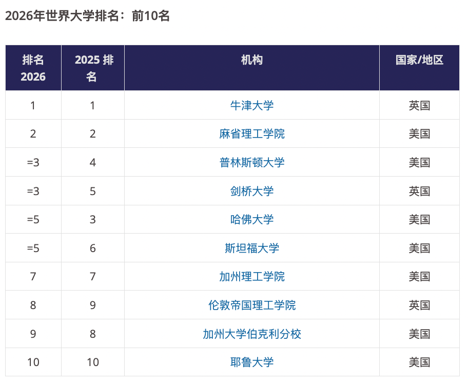 2026年泰晤士高等教育全球最佳大学榜单深受全球学生、学者、政府和行业专家的信赖,涵盖了来自115个国家和地区的2191所院校。牛津大学连续十年蝉联榜首,得益于强劲的研究环境得分